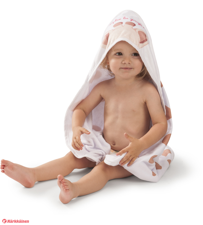Благодаря удобному уголку-капюшону, полотенце не будет спадать с малыша, в него можно укутать малыша после купания.